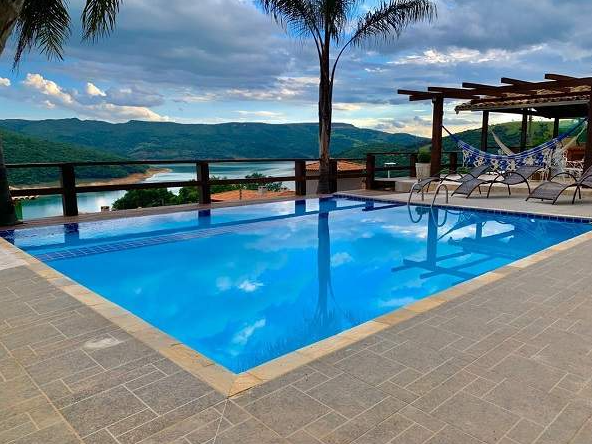 Casa com 5 quartos, sendo 2 suites e 3 quartos comuns, 1 banheiro na área externa e 1 social interno, cozinha toda equipada, sala com TV de Led, ampla varanda com linda vista para o Lago de Furnas. Deck de madeira e pergolado na área de lazer com vista para o Lago, piscina com borda infinita e área infantil, churrasqueira com freezer, mesa de sinuca e mesa de jantar, jardim, wi-fi e espaço amplo para estacionamento. Localizado no Funil, à 3Km do Condomínio Escarpas do Lago e a 9Km de Capitólio/MG.